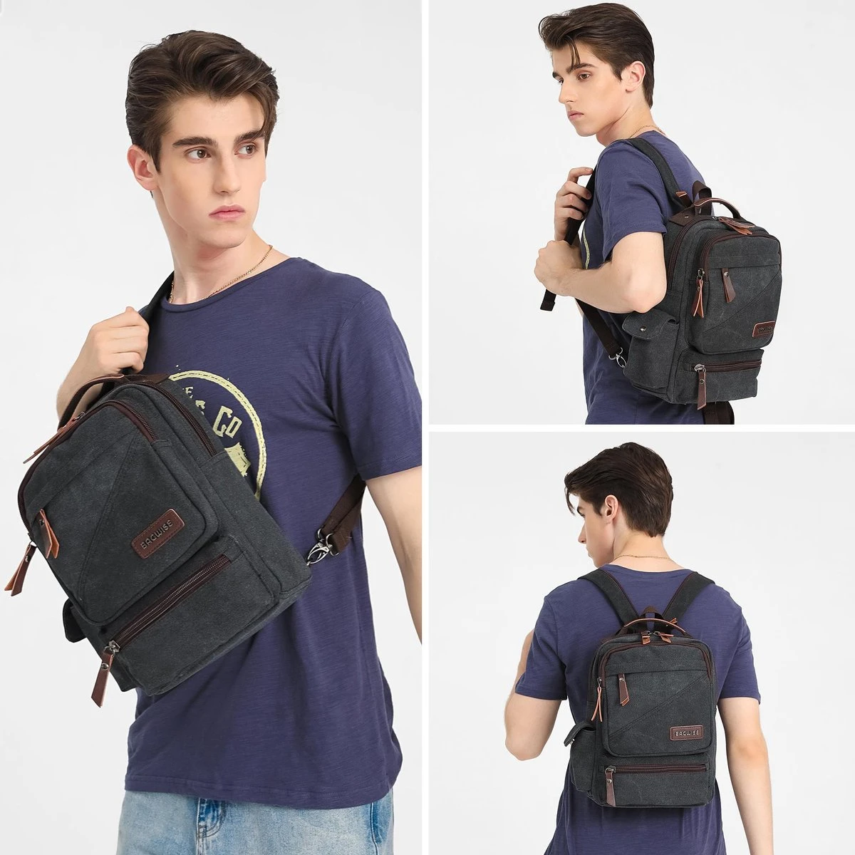 Vintage Canvas Rugzak / Slingbag van Bagwise. Ideaal voor werk of school, maar ook geschikt voor dagelijks gebruik.