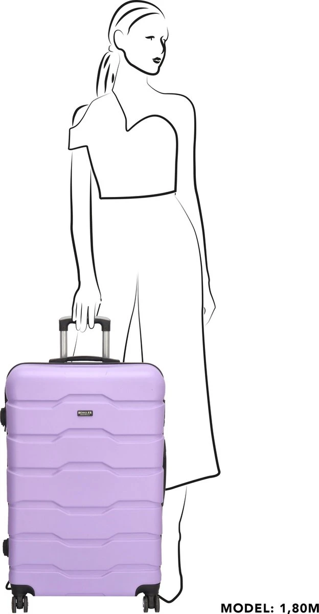 Grote hardschalen, ABS koffer van Beagles Originals. Binnenin gevoerd, voorzien van spanbanden en een tussenschot met rits. Comfortabel door 4-wiel systeem. Op de bovenkant én op de zijkant zit een handvat. De koffer is op slot te zetten middels een vast cijferslot op de zijkant van de koffer.