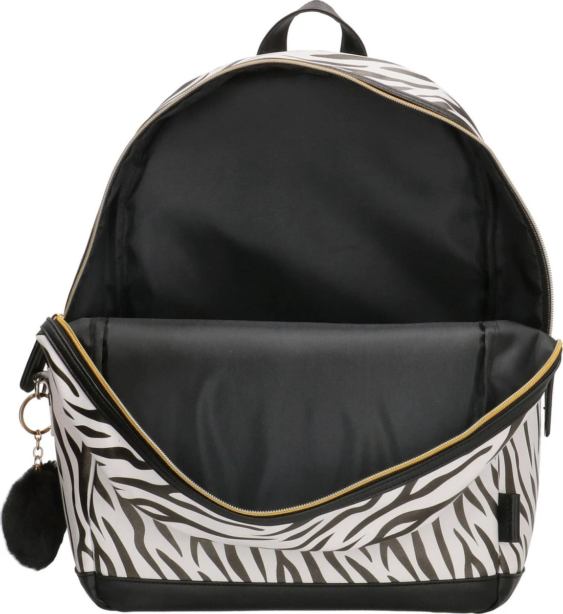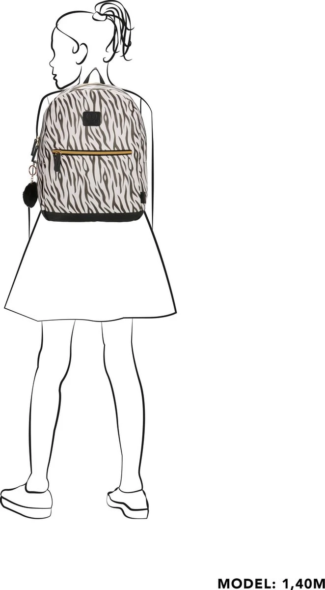 Zebraprint lovers opgelet! Hoe tof is deze rugzak van Beagles Originals met de zebraprint en het zwarte hartje aan de rits van de tas! De tas heeft een hoofdvak en voorvak, beide met ritssluiting. Het hoofdvak van de tas is lekker ruim, al de spullen van jouw kleintje passen er in. De tas wordt gedragen aan de twee schouderbanden óf aan het enkele handvat op de bovenzijde van de tas. Is deze leukerd binnenkort van jouw kleintje?