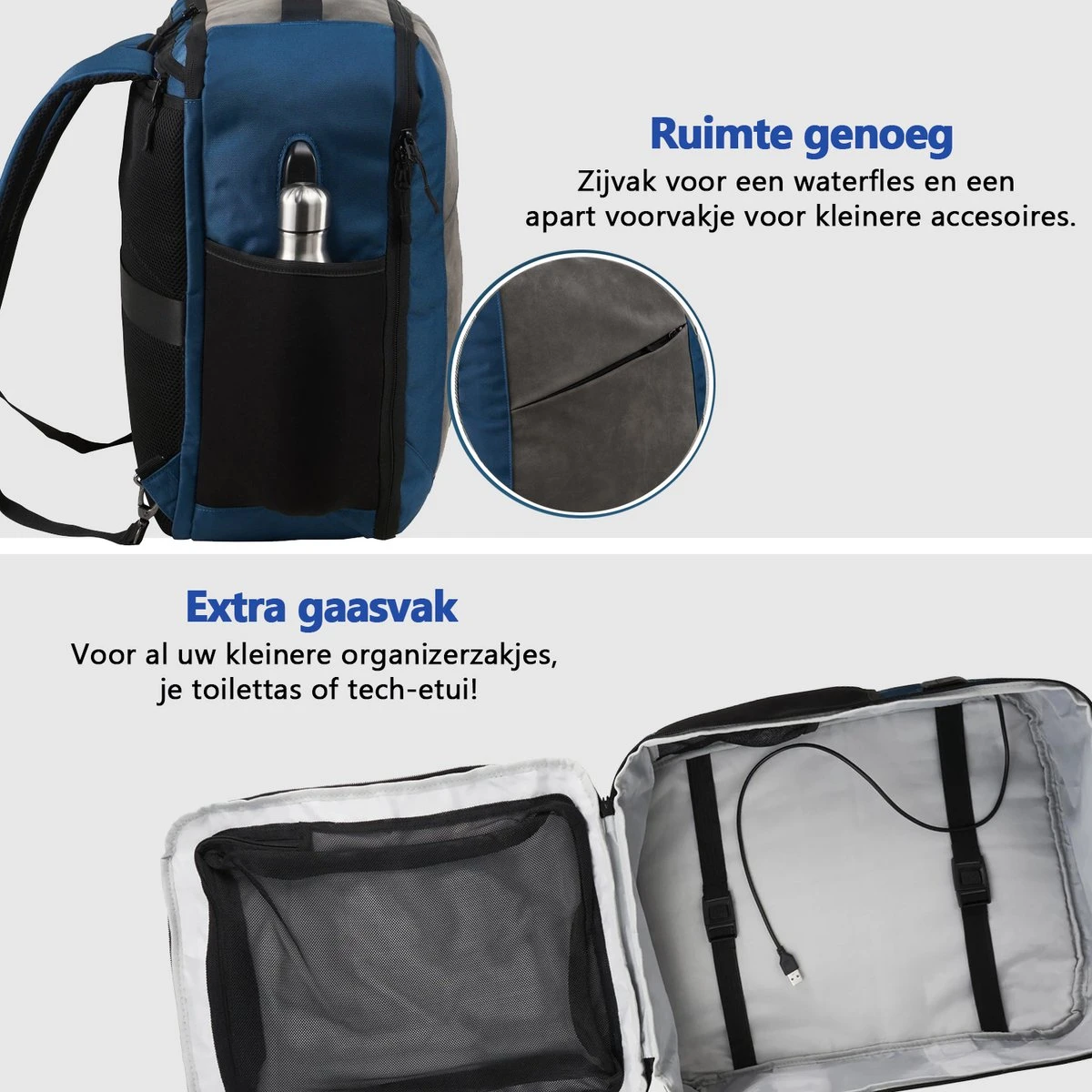 Let op: U kan de CabinMax Manhatten ook bestellen in 20L. Check altijd van te voren welke maximale dimensies voor handbagage gehanteerd worden bij de luchtvaartmaatschappij en kies welk rugzak het best voor U past.