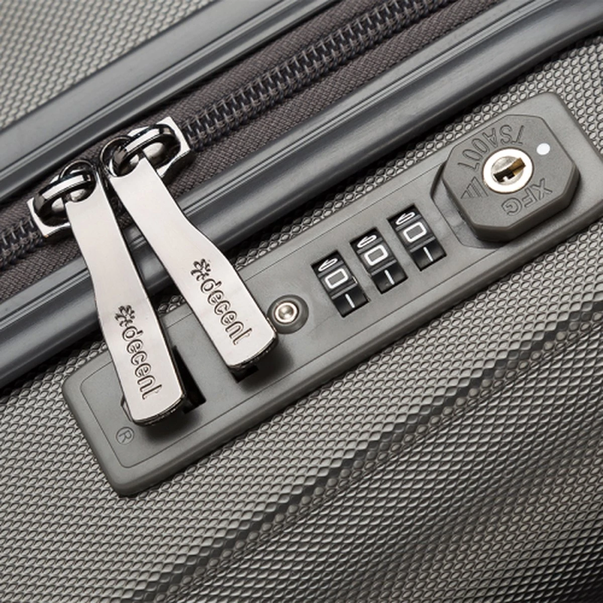 Kleine hardschalen ABS handbagage koffer. Koffer is voorzien van een rits rondom die op slot te zetten is middels een vast TSA cijferslot op de zijkant van de koffer. Binnenin gevoerd en voorzien van meerdere insteek- en ritsvakken voor het overzichtelijk opbergen van uw bagage.