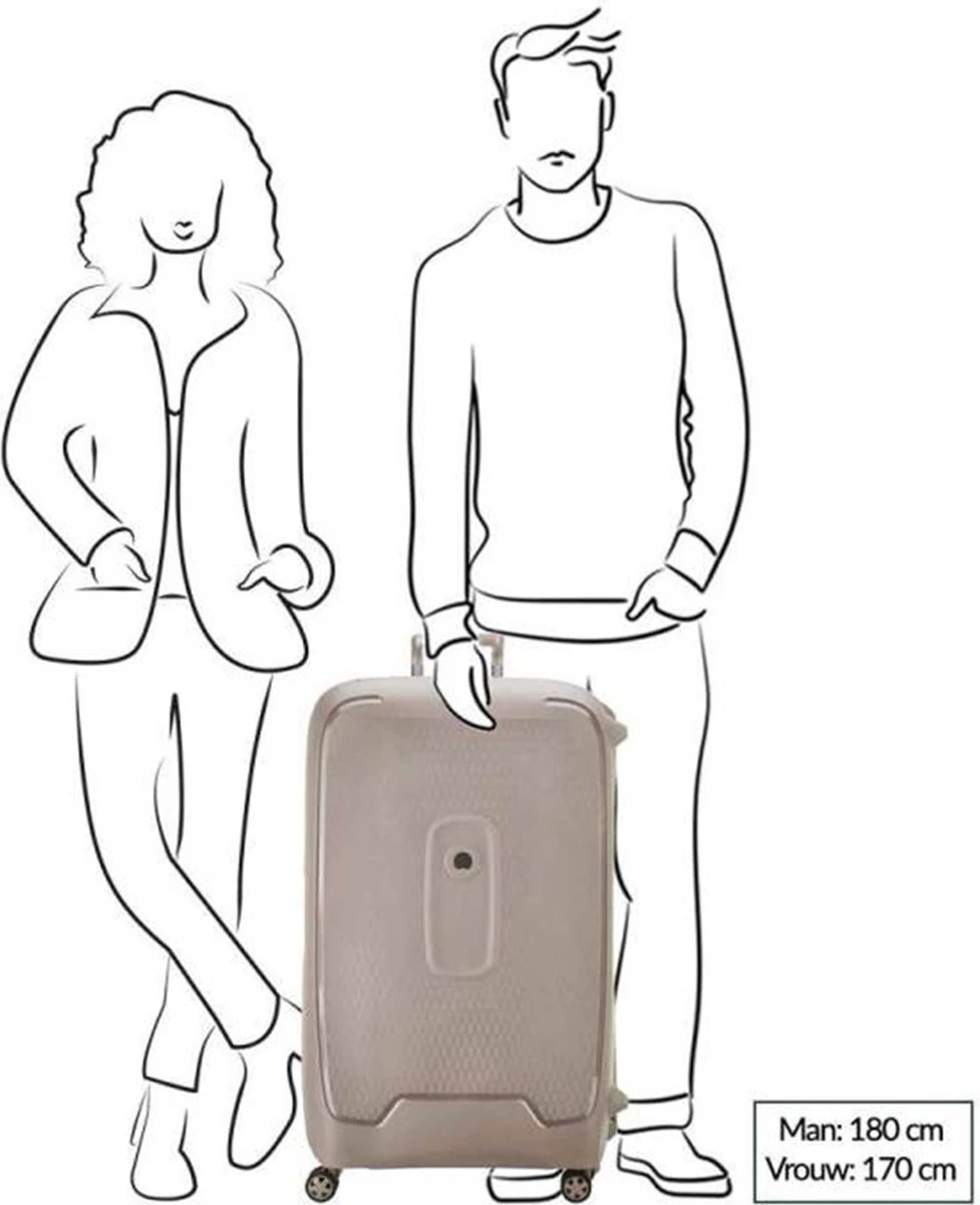 De serie Delsey Moncey is een serie gemaakt van het zeer schokbestendige materiaal polypropyleen. De koffer heeft een 3-puntssluiting met TSA cijferslot. Ook van binnen is deze koffer mooi uitgevoerd met elastische inpakbanden en een vak die met een rits is af te sluiten. Dankzij de vier soepele, stille en dubbele wielen, de twee handvatten en de telescopische trekstang kan de koffer comfortabel worden vervoerd. Met een inhoud van 116 liter is deze koffer ideaal voor een wereldreis.