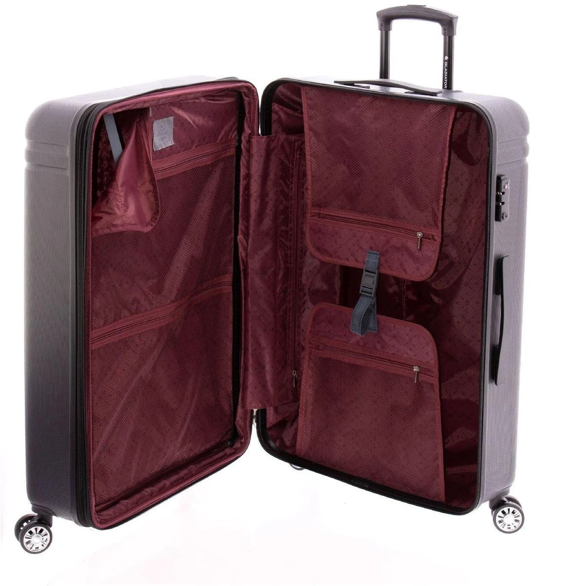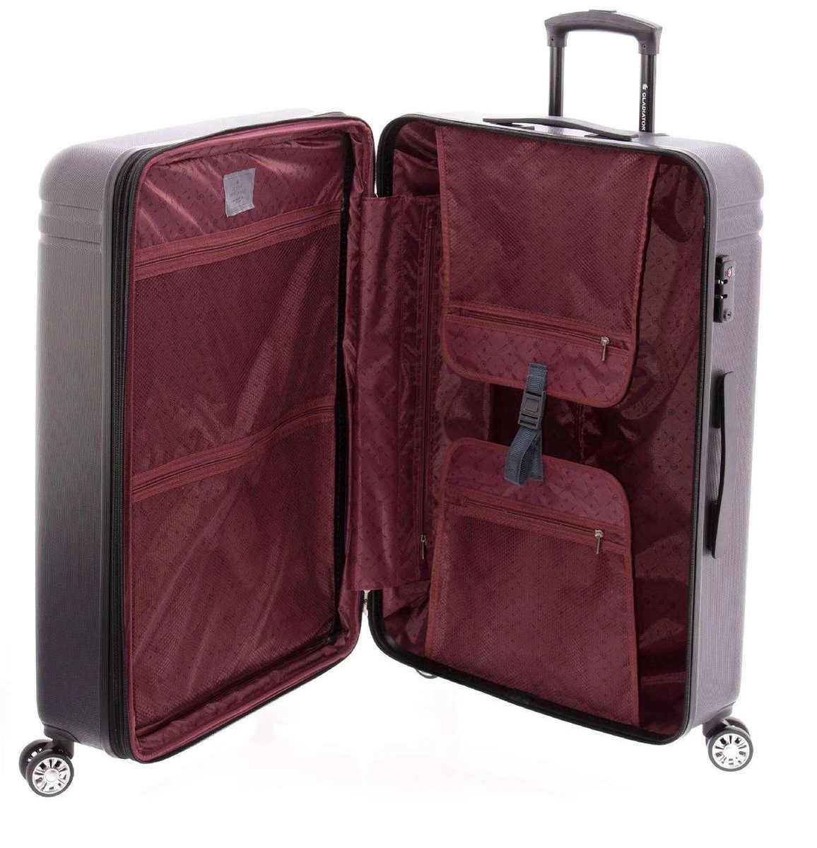 Stevige, grote hardschalen ABS koffer uit de Cactus serie van Gladiator. De koffer is voorzien van een ritssluiting rondom die op slot te zetten is middels een vast TSA cijferslot op de zijkant van de koffer. Met de extra expandable rits kun je de koffer qua volume vergroten van 93 naar 102 liter. Handig als je een keer meer ruimte nodig hebt. Koffer is binnenin gevoerd en voorzien van ritsbaar tussenschot, 5 ritsvakjes en een pakriem. Handvat op boven- en zijkant en voorzien van comfortabel 4-wiel systeem en uitschuifbare trekstang.