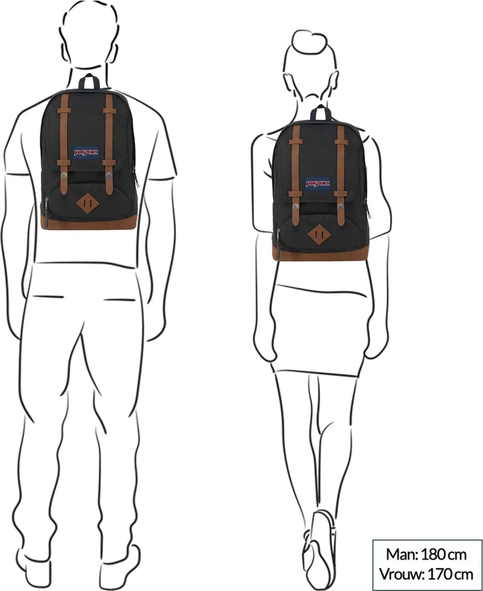 De JanSport Cortlandt rugzak combineert stijl en functionaliteit, met een eersteklas kunstlederen bodem en afwerking, interne 15 inch laptop sleeve, organizer panel en voorvak met rits.