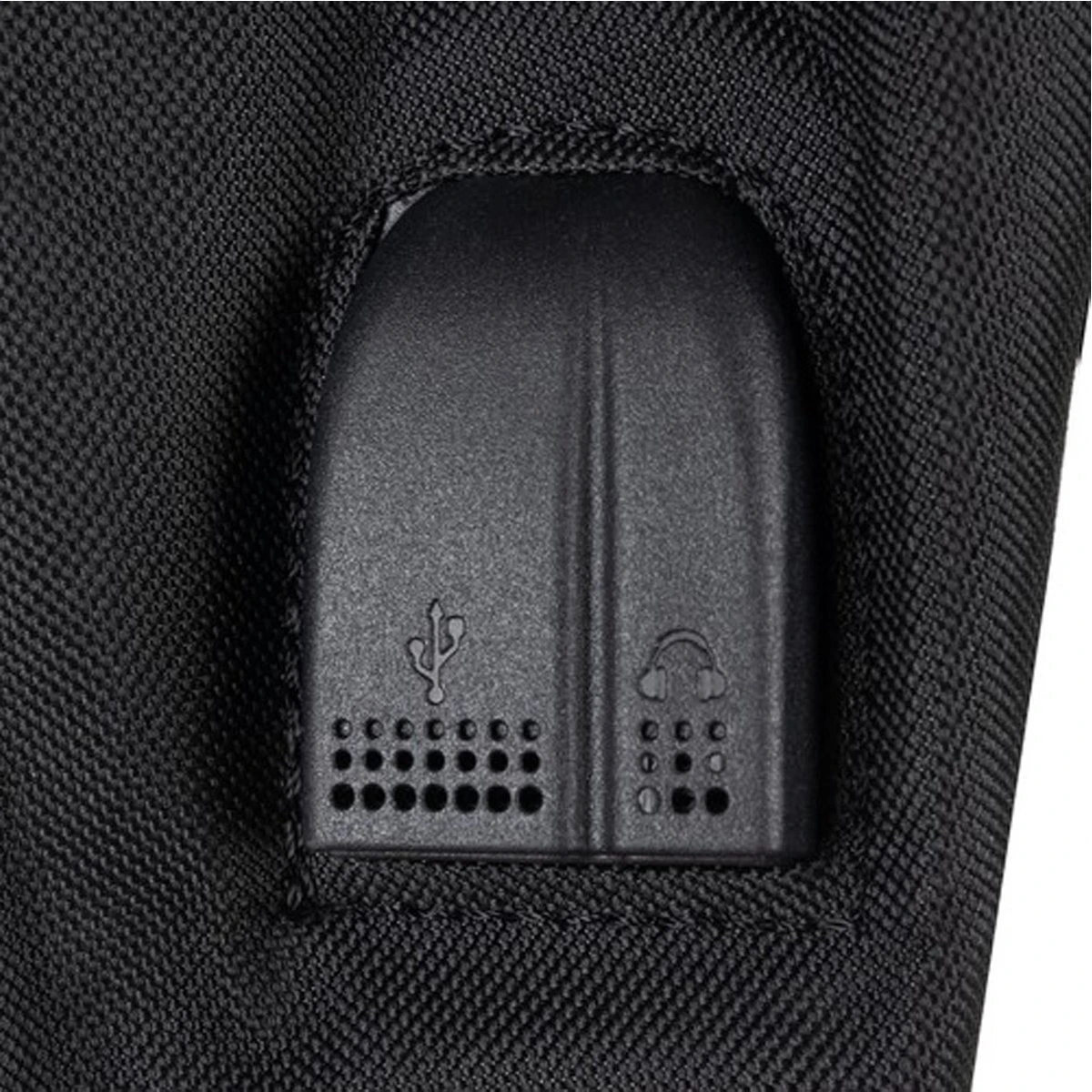 MODERNE OPLOSSINGEN EN TECHNOLOGIEËN BIJ DE HAND – de rugzak heeft een ingebouwde USB-poort en een hoofdtelefoonaansluiting. Als je bijvoorbeeld een powerbank hebt, stop je deze gewoon in je rugzak en sluit je hem aan, en je kunt je telefoon direct opladen via de USB-aansluiting. U kunt een hoofdtelefoon op dezelfde manier gebruiken. Het enige wat je hoeft te doen is de muziek op je telefoon aan te zetten en deze aan te sluiten op de rugzak, en de koptelefoon op de Jack-aansluiting.