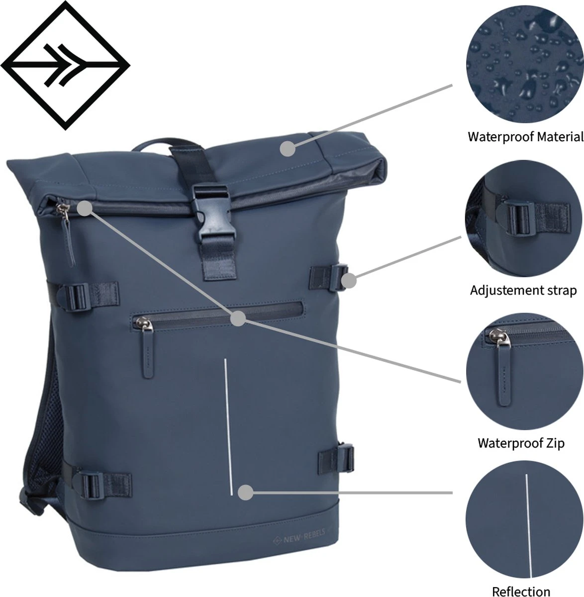New Rebels® William – Rugtas – Roze – Waterafstotend – Roll-top – 15.615141312108 – 16L – 29x13x45cm – Rugzak / Backpack