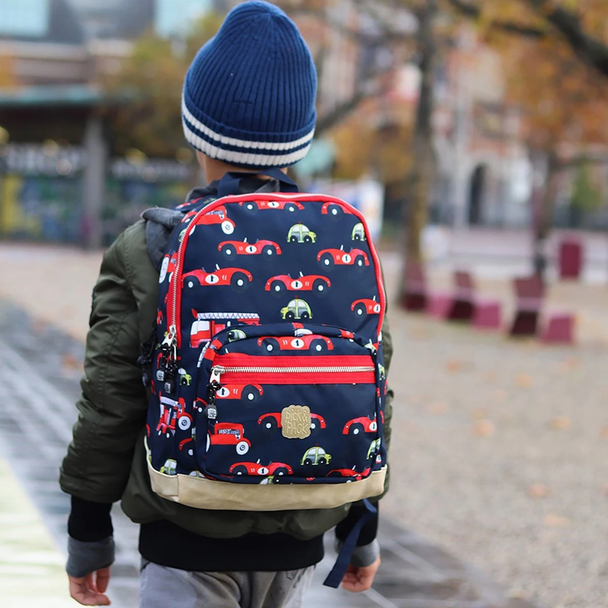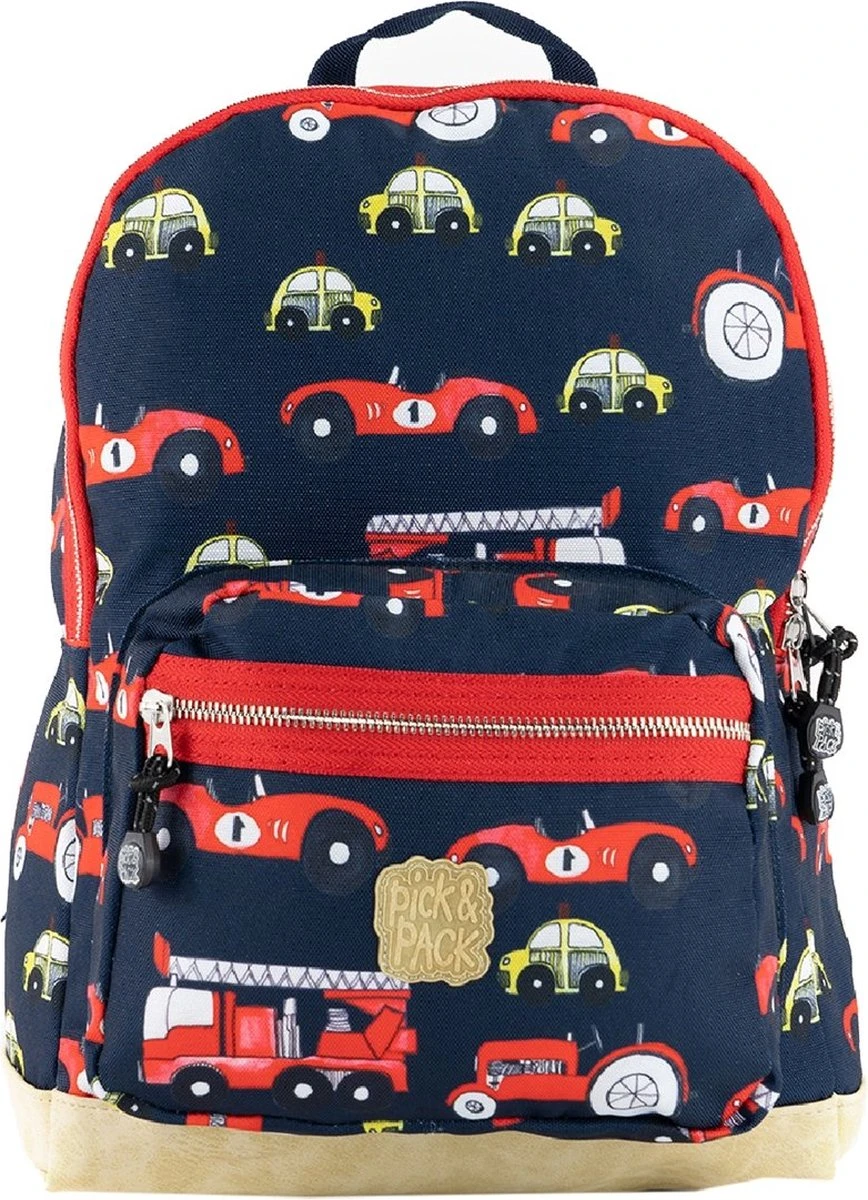Pick & Pack rugzak met stoere autoprint. Een coole rugzak met fantasieprint voor kinderen van 5 jaar en ouder. Dankzij het juiste formaat is de rugtas geschikt voor A4 formaat schoolspullen, een lunchbox en alle andere benodigdheden. Aan de buitenzijde voorzien van twee speciale vakken voor een drinkfles. Aan de binnenzijde zit een klein ritsvakje, vakje voor telefoon en een makkelijke sleutelhouder. Met daarop een adres label voor naam, adres en telefoonnummer. Gemakkelijk voor als de rugtas eens ergens wordt vergeten! Een apart gewatteerd vak is bereikbaar met een rits, hierin kunnen boeken of een 13inch laptop of ipad worden opgeborgen. Voorop een borstbandje om de rugzak stevig vast te maken tijdens het lopen. De rugtas is ook voorzien van kleine reflecterende details zodat je ook in het donker opvalt. Dankzij de gewatteerde schouderbanden en het ergonomische rugdeel is de tas goed door het kind zelf te dragen.