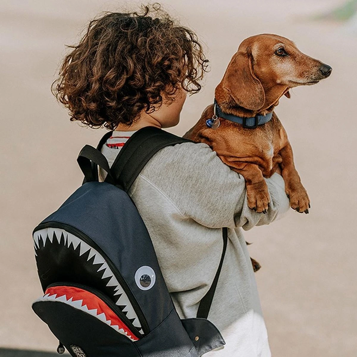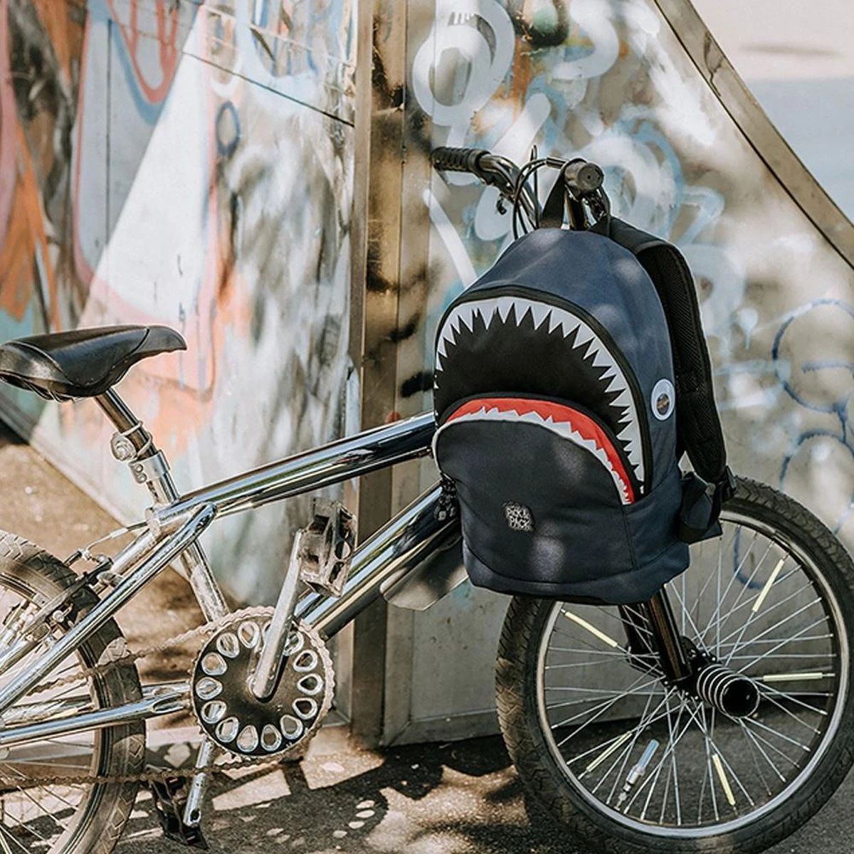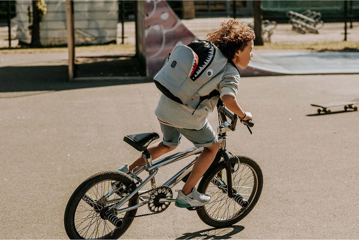 Pick & Pack rugzak in de vorm van een haai voor kinderen van 5 jaar en ouder. Dankzij het juiste formaat is de rugtas geschikt voor A4 formaat schoolspullen, een lunchbox en alle andere benodigdheden. Voorzien van een speciaal vak voor een drinkfles. Aan de binnenzijde zit een klein ritsvakje, vakje voor telefoon en een makkelijke sleutelhouder. Met daarop een adres label voor naam, adres en telefoonnummer. Makkelijk voor als de rugtas eens ergens wordt vergeten! Een apart gewatteerd vak is bereikbaar met een rits, hierin kunnen boeken of een 13inch laptop of ipad worden opgeborgen. Voorop een borstbandje om de rugzak stevig vast te maken tijdens het lopen. De rugtas is ook voorzien van kleine reflecterende details zodat je ook in het donker opvalt. Dankzij de gewatteerde schouderbanden en het ergonomische rugdeel is de tas goed door het kind zelf te dragen.