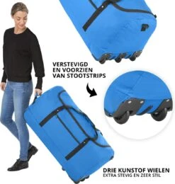 TravelZ Opvouwbare Wieltas | Reistas Op Wielen | 100 Liter | Verbeterd 2022 Model | Blauw