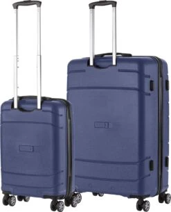 TravelZ Softspinner TSA Kofferset – 2-delig Handbagage + Grote Koffer 77cm – Dubbele Wielen – Blauw