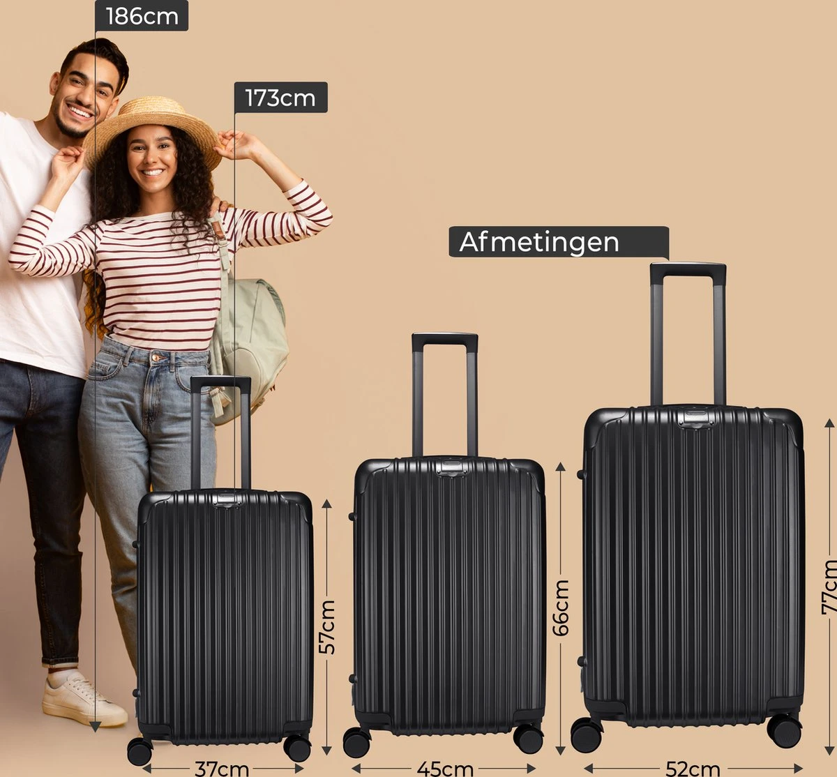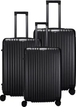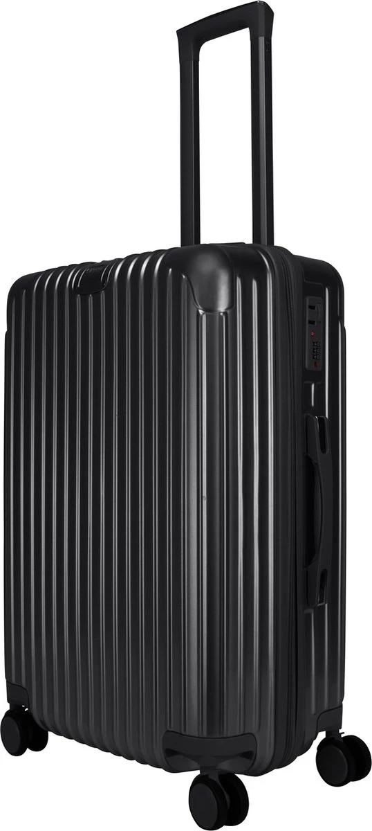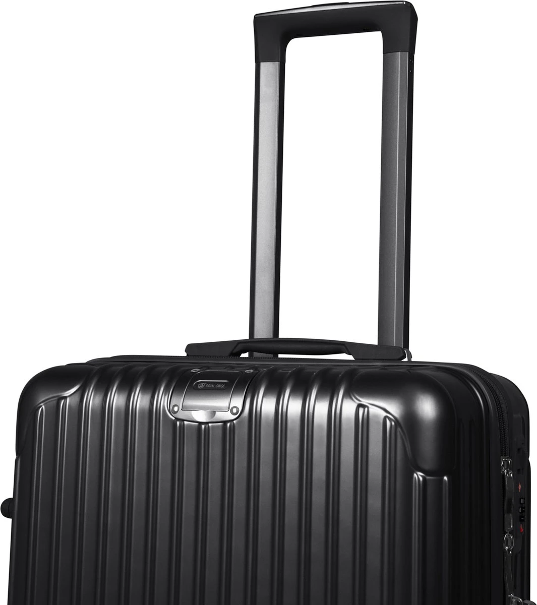 Deze betrouwbare koffer beschikt over al het nodigde voor u volgende vakantie. Een harde en veilige buitenkant, een aliminium trekstang, 3-cijferige slot, 4 dubbele flexibele wielen. De koffer is verkrijgbaar in 3 formaten. De middenmaat en grote maat zijn voorzien van stootrubbers, deze zorgen ervoor dat uw koffer tijdens transport zo min mogelijk beschadigd raakt. De stootrubbers bevinden zijn aan de lange zijde van de koffer. Zo beschikken de middenmaat en de grote maat ook voor een extra handvat. Deze zit onder het cijferslot. Doormiddel van deze extra handvat is het makkelijker om de zware koffer te verplaatsen of op te tillen in de auto, trein of bus. Binnen in de koffer is er een duidelijke en overzichtelijke verdeling. Aan de ene zijde een divider met 2 gekruiste spanbanden en aan de andere zijde een handige ritsvak. Dit maakt deze koffer van het merk Royal Swiss een betrouwbare reispartner met een fraaie design.