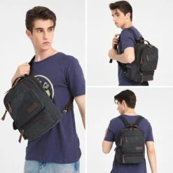 Bagwise® – Rugzak – Canvas – 15 L- Vintage – 13″ Inch Laptopvak – Compact Klein -1261 Zwart