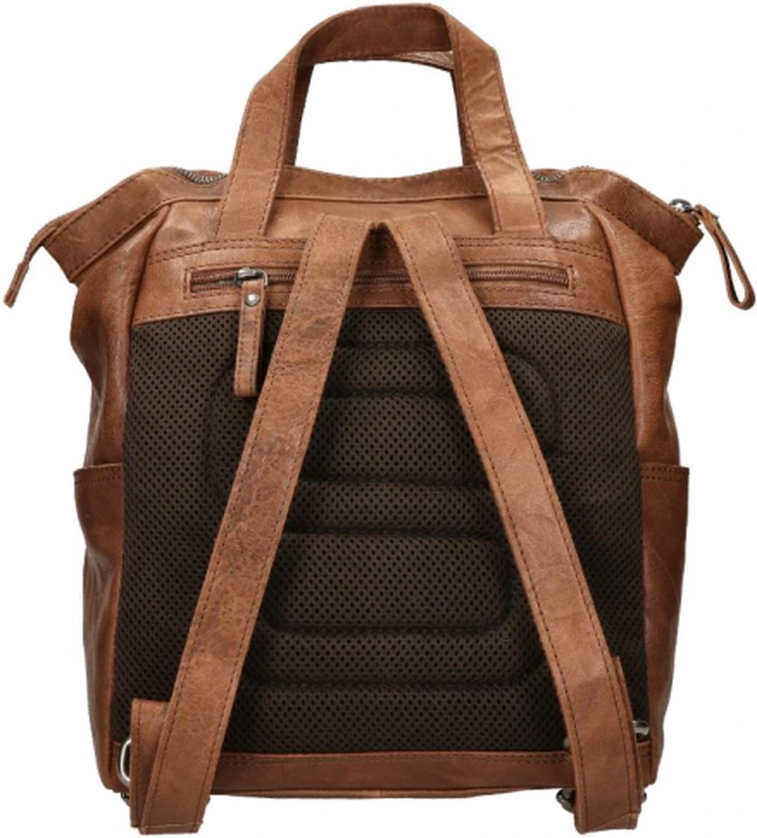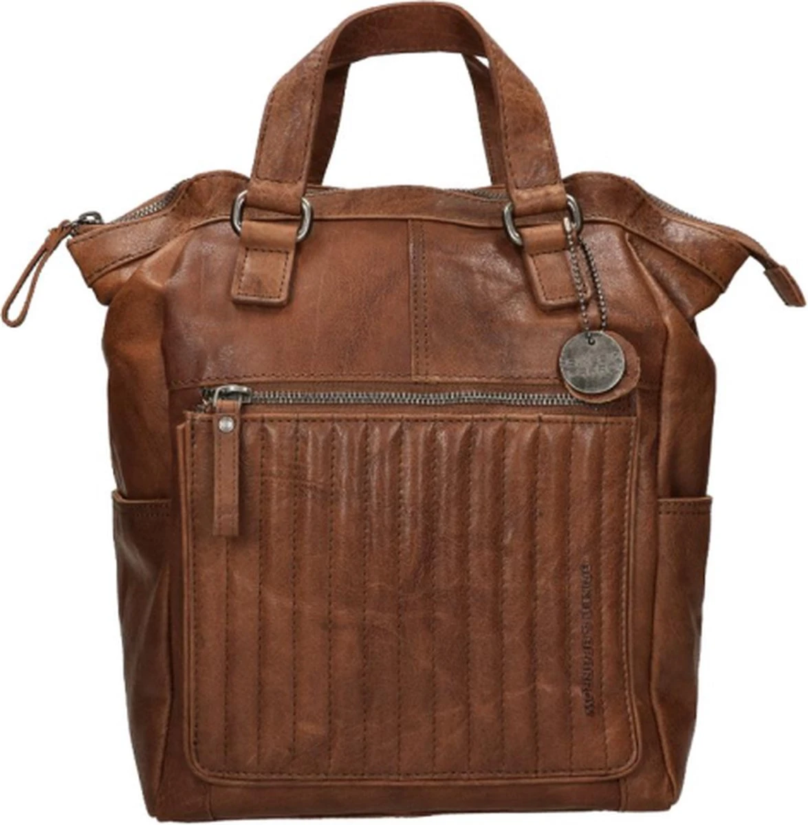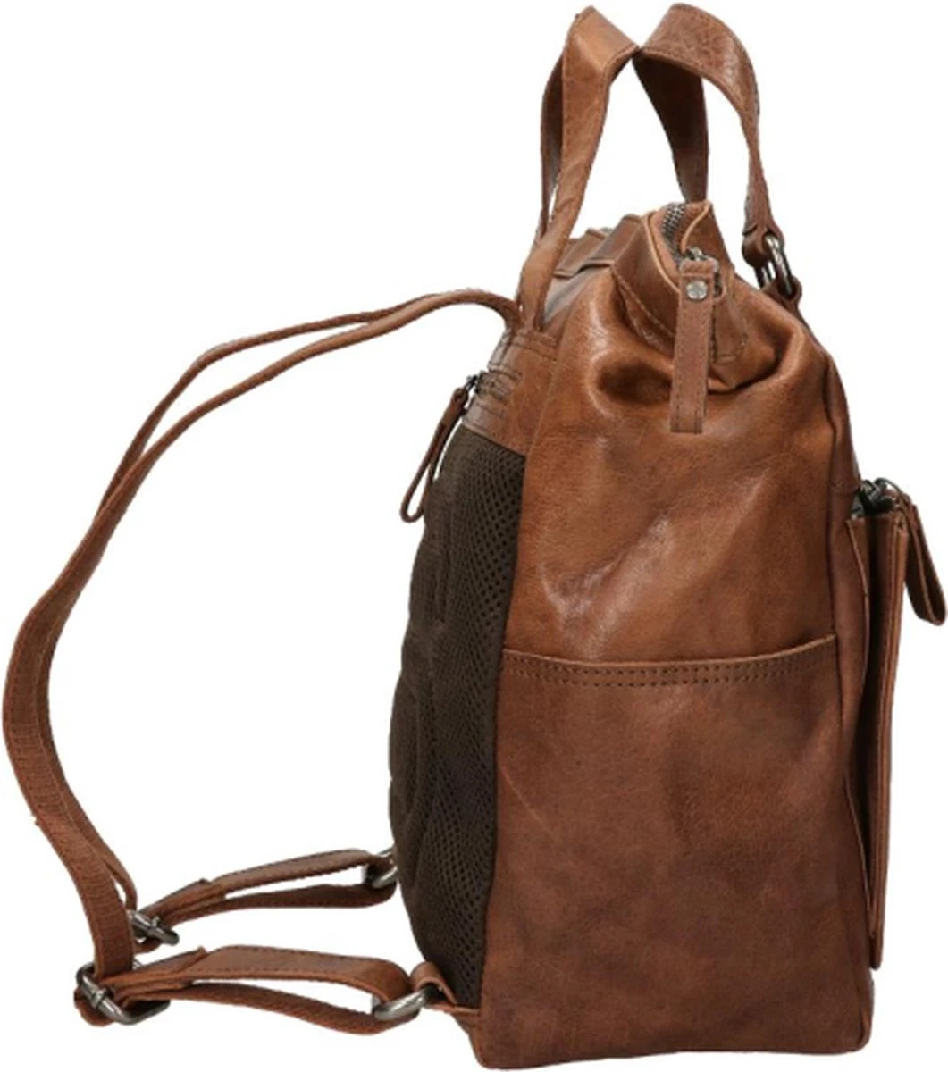 Spikes & Sparrow maakt tassen van leer in natuurgetrouwe kleuren, uit hoge kwaliteit. Zo ook deze rugtas uit de collectie Bronco, de cognac kleur geeft dit model een robuste look. Dit model heeft veel details zoals vakken en leren decoratie, bijvoorbeeld de gewatteerde strepen aan de voorzijde. Aan de buitenkant alleen al zitten twee ritsvakken en twee steekvakken met magneetsluiting.