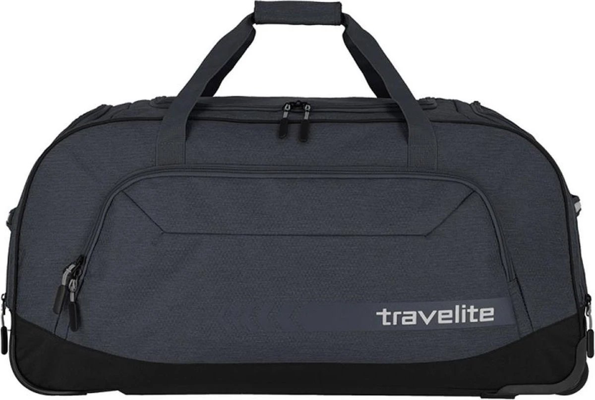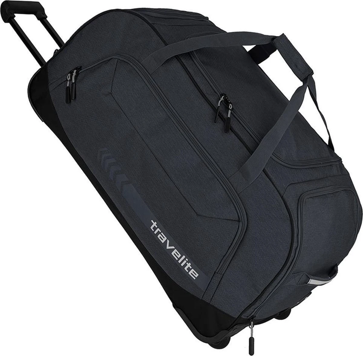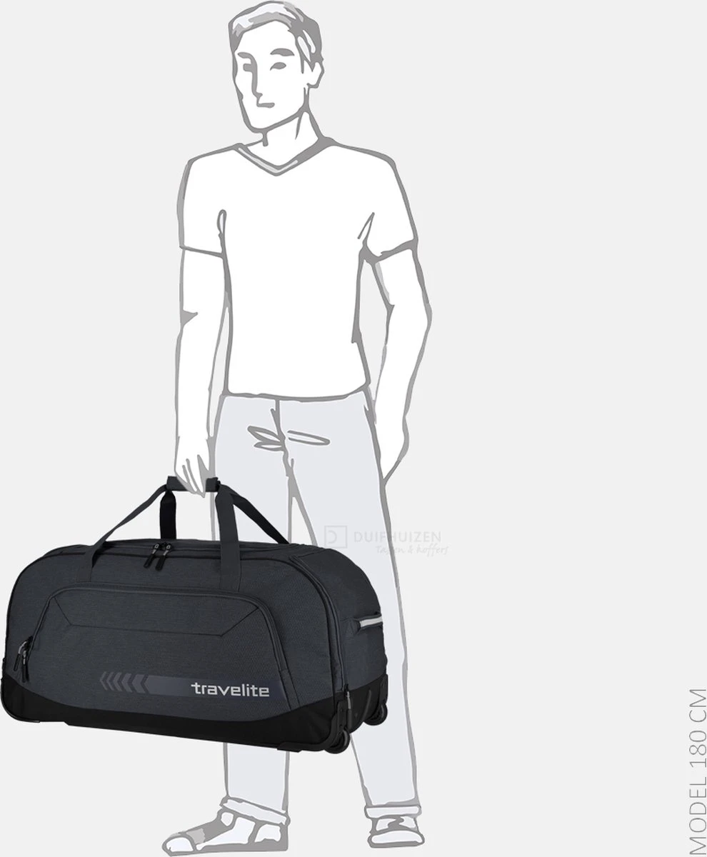 Deze praktische Travelite reistas komt uit de Kick Off collectie. Dit model in de kleur zwart is door het formaat en het soepele materiaal ideaal voor bijvoorbeeld een autovakantie. De binnenzijde van deze reistas bestaat uit een ruim compartiment. Aan de buitenkant van de tas vind je drie ritsvakken waar je je belangrijke spullen in kunt opbergen. Daarnaast is deze reistas voorzien van twee stevige handvatten aan de voorzijde, een handgreep aan de bovenzijde en een verstelbare trekstang.